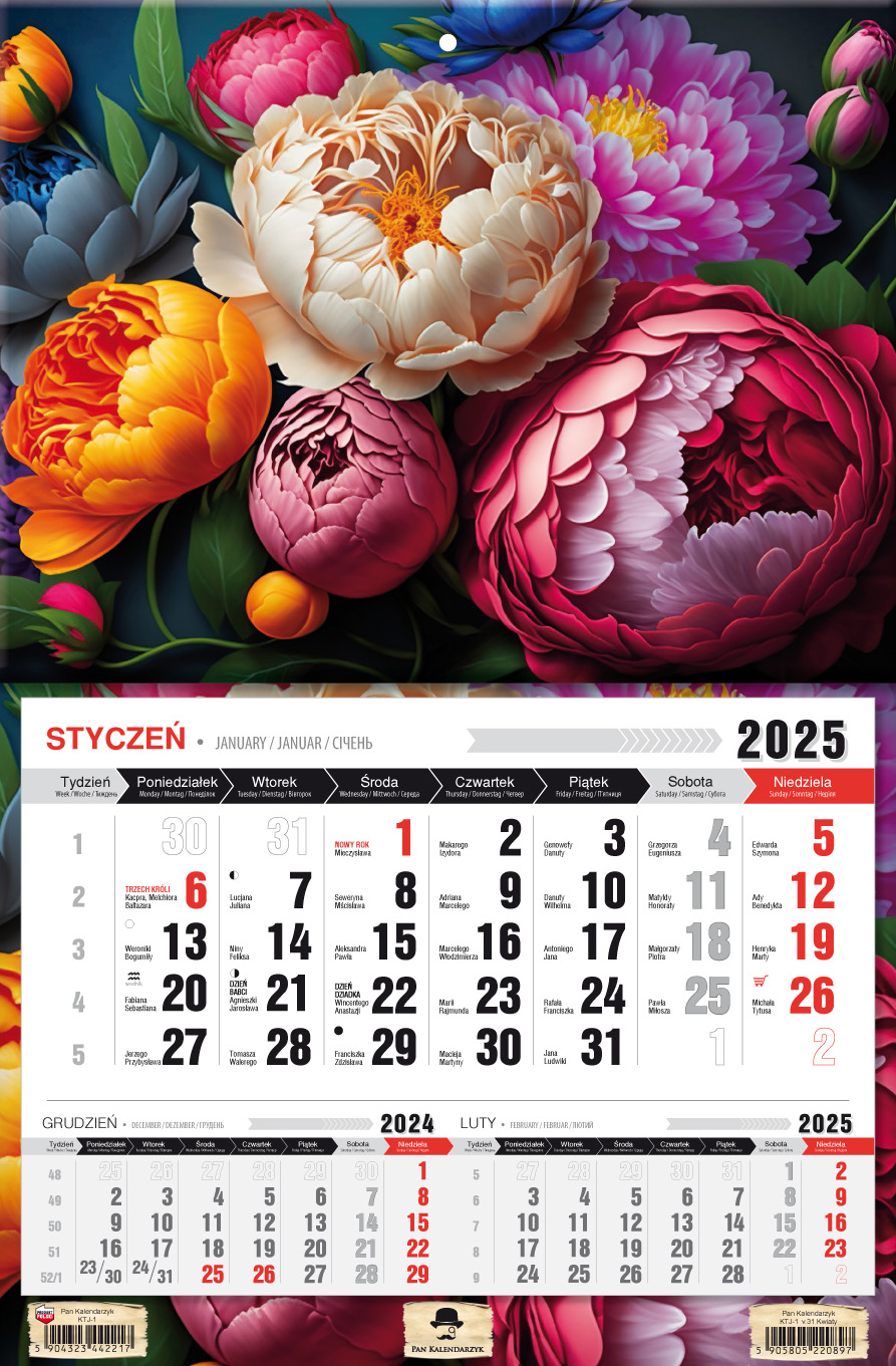 Kalendarz 2025 Trójdzielny jednodzielny Kwiaty