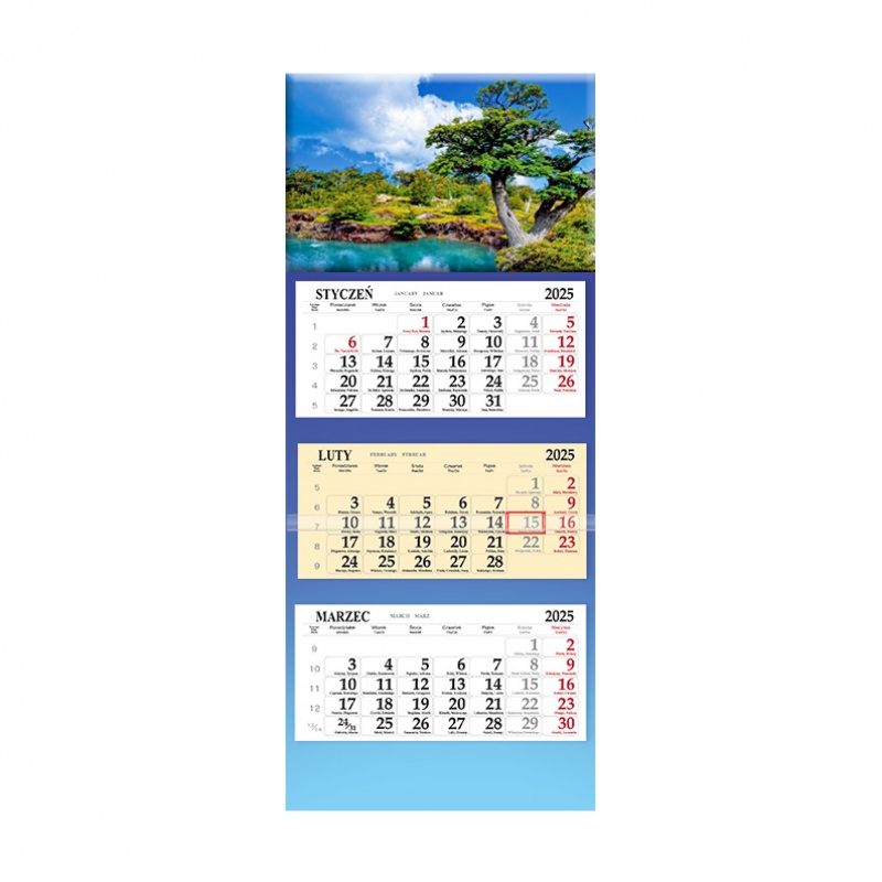 Kalendarz 2025 trójdzielny Jeziorko SB6-10