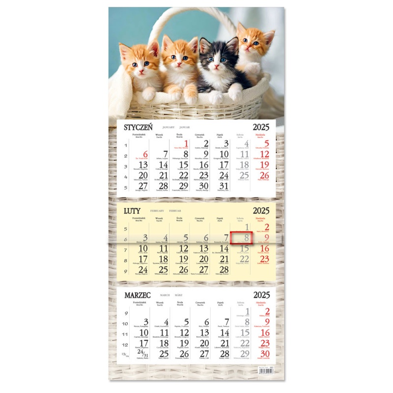 Opakowanie Kalendarz 2025 trójdzielny Kotki SB8-11