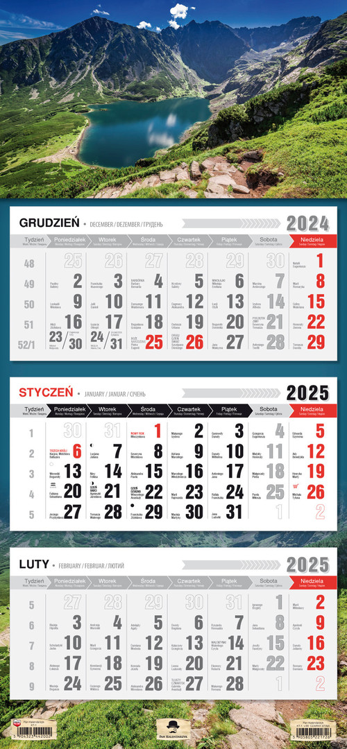 Kalendarz 2025 Trójdzielny KT1 Płaska Główka Mix
