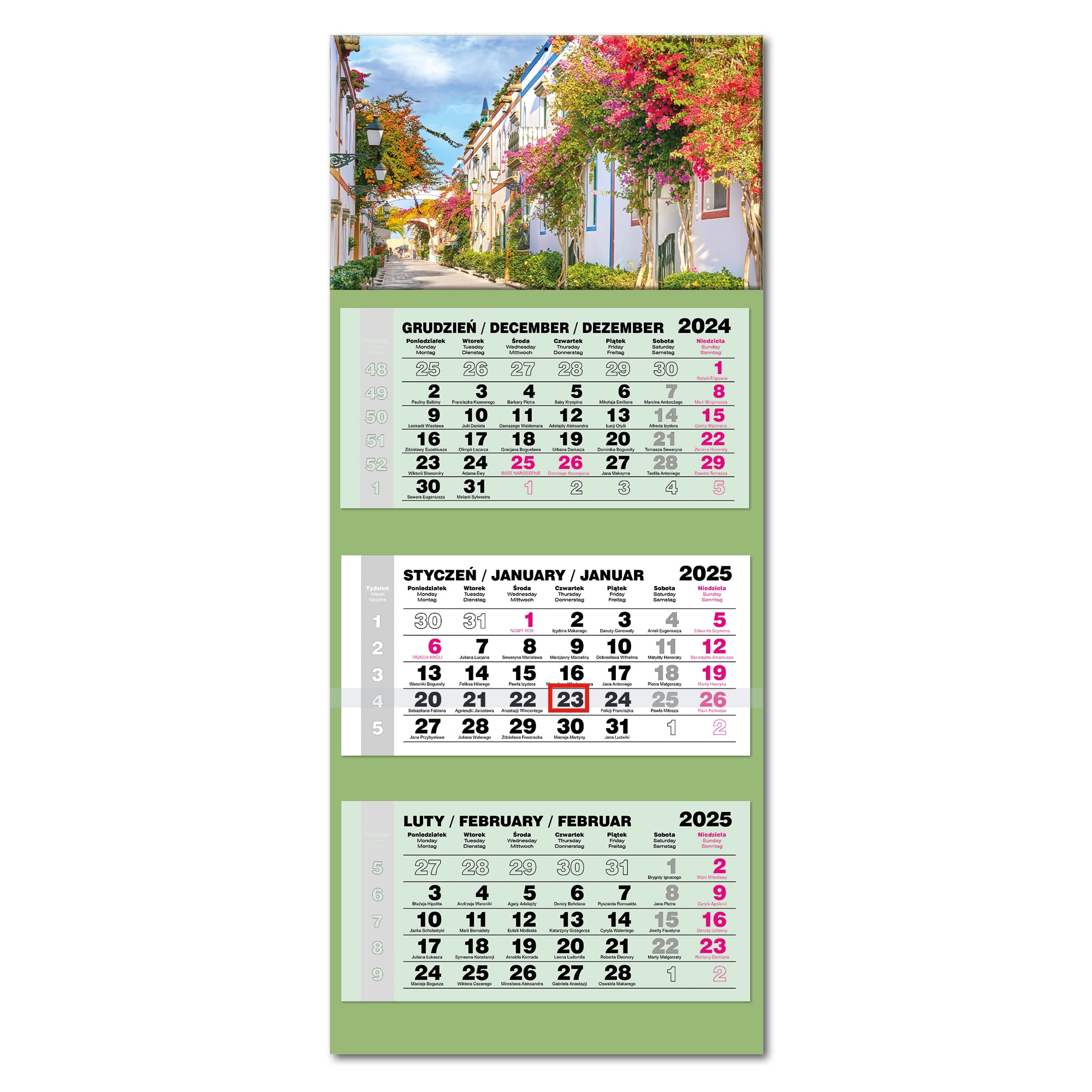 Opakowanie Kalendarz 2025 trójdzielny LUX gł. wypukły Kanary
