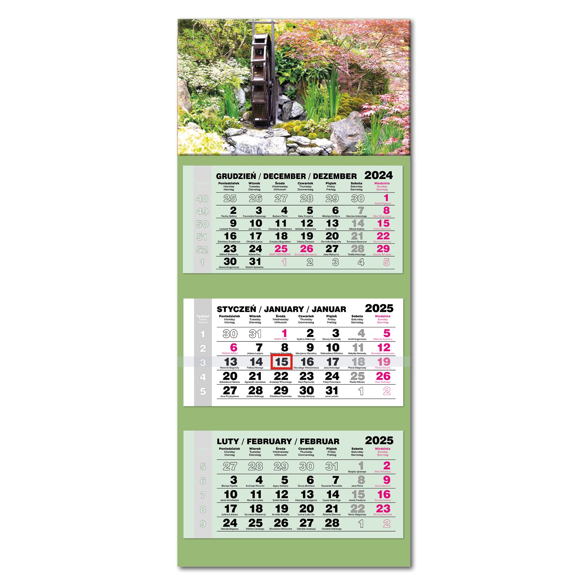 Opakowanie Kalendarz 2025 trójdzielny LUX gł. wypukły Ogrody