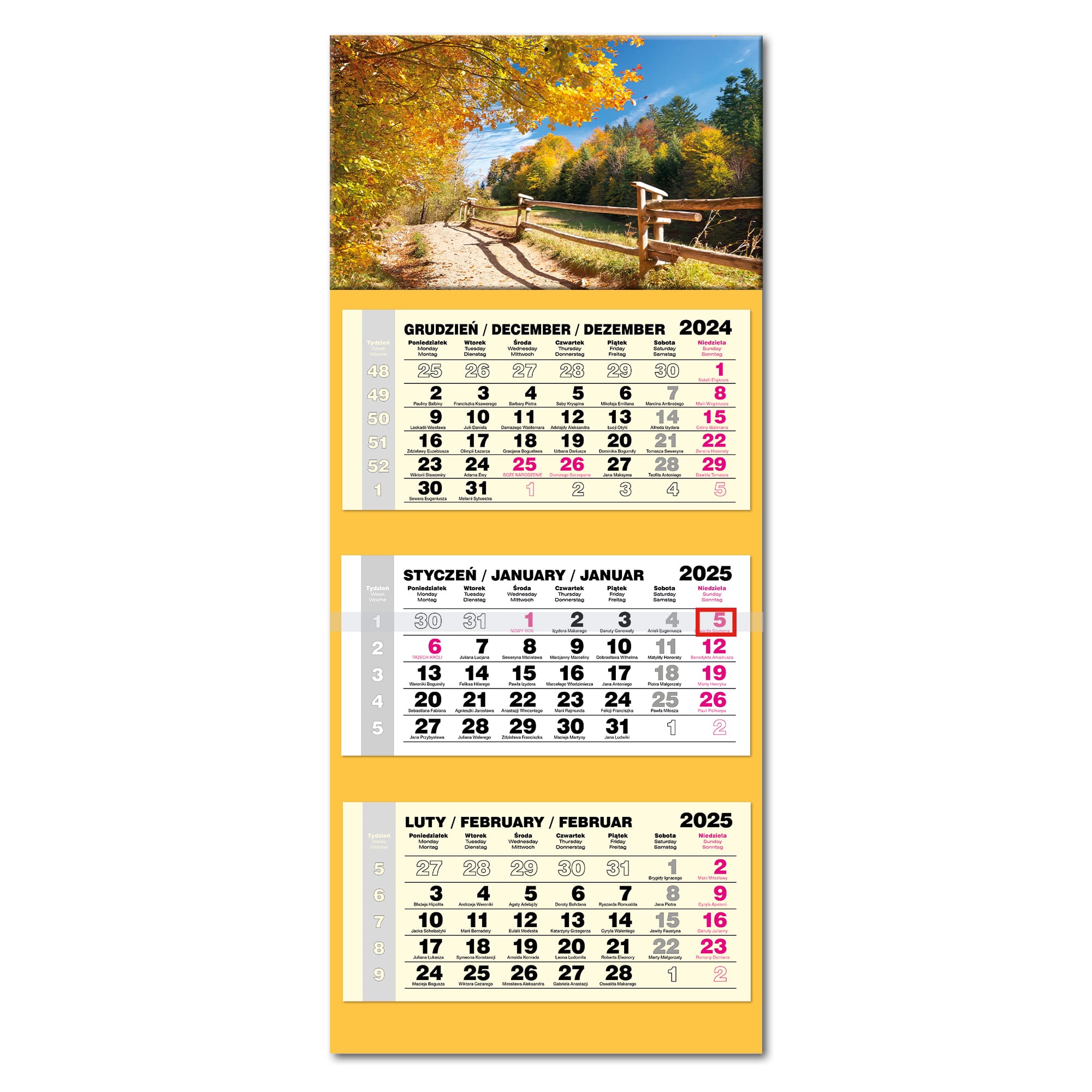 Kalendarz ścienny, trójdzielny LUX