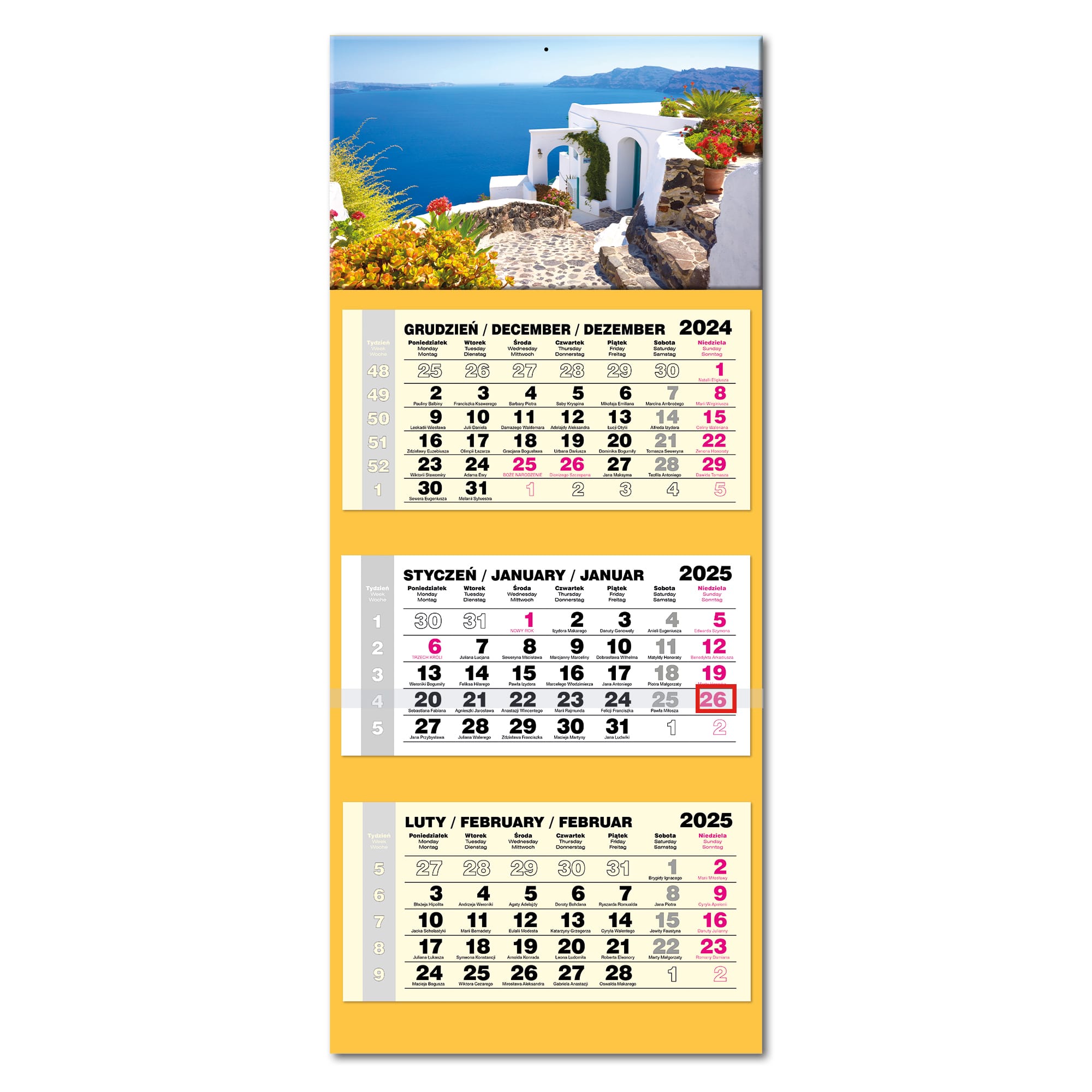 Kalendarz 2025 trójdzielny LUX wypukły Santorini