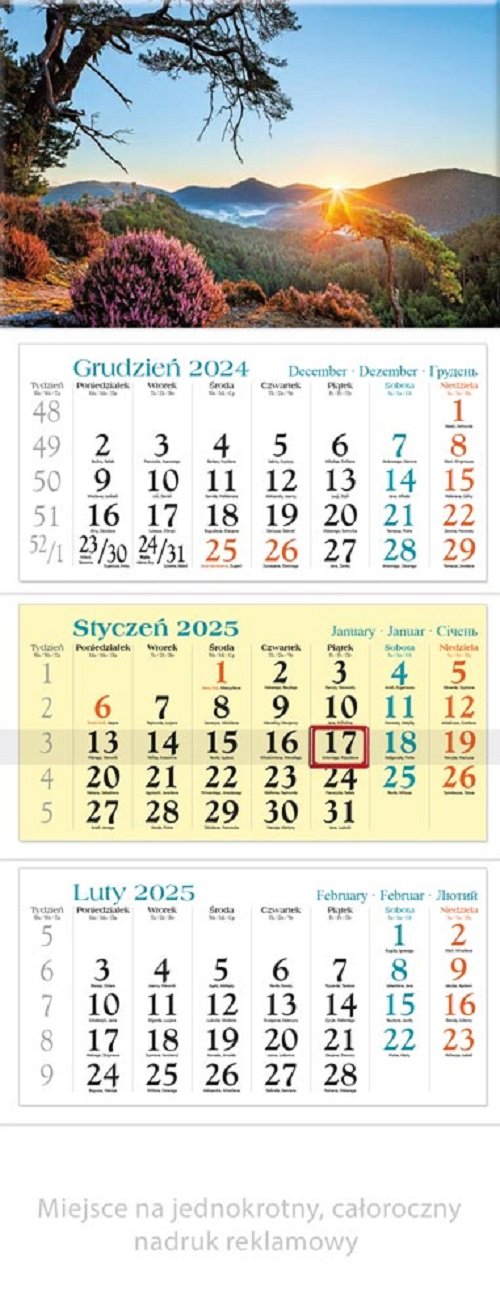 Kalendarz 2025 trójdzielny Pejzaż