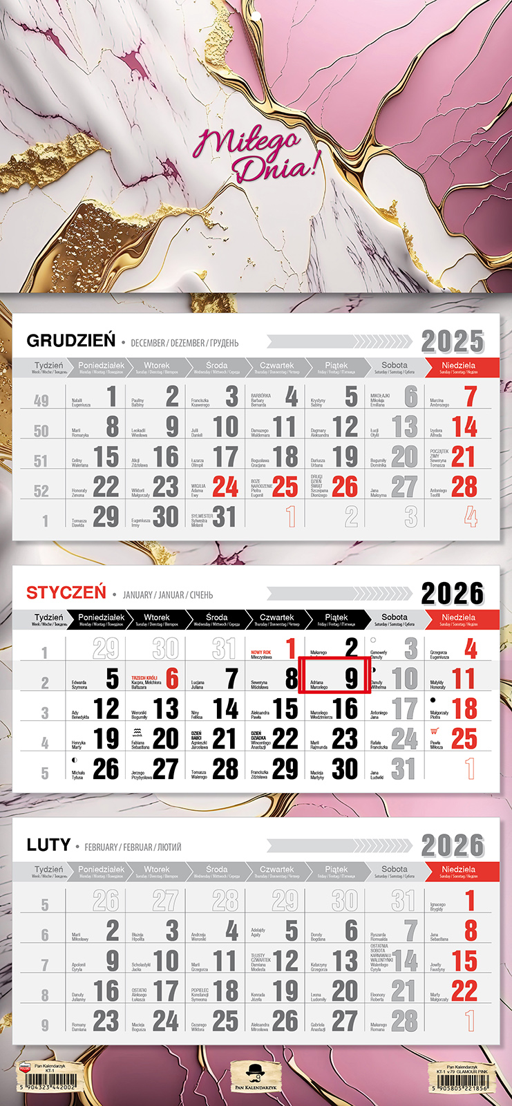 Kalendarz 2025 Trójdzielny płaska główka Glamour