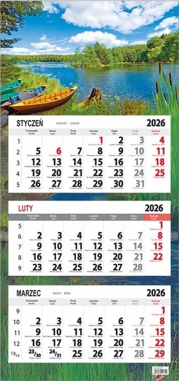 Kalendarz 2025 trójdzielny płaska główka jezioro