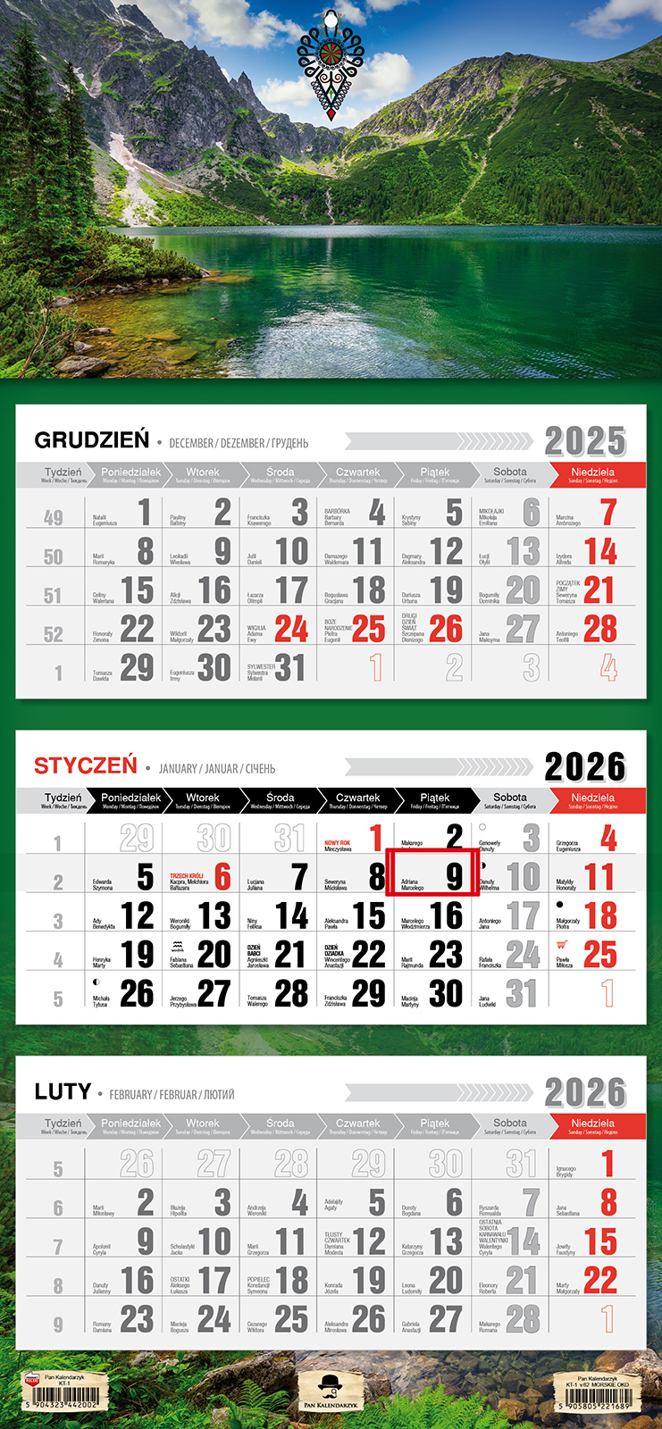 podtytuł: Kalendarz 2025 Trójdzielny PŁASKA GŁÓWKA KT – 1 V.62 MORSKIE OKO