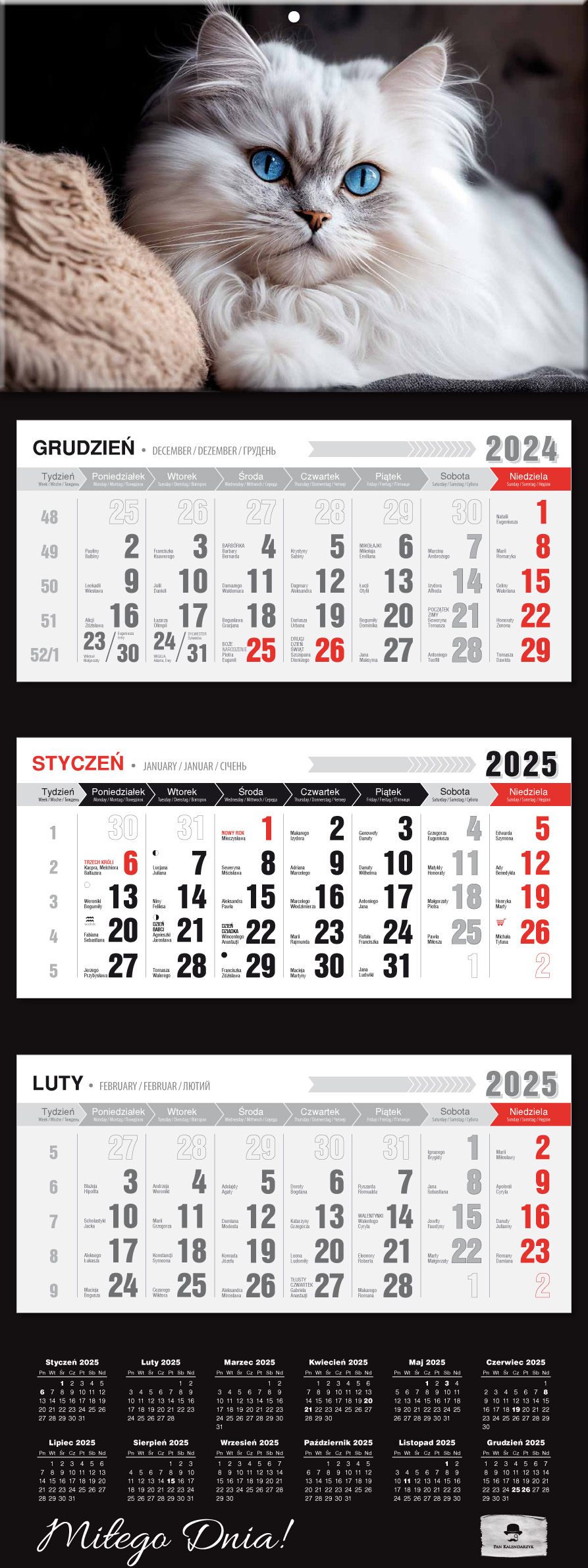 podtytuł: Kalendarz 2025 Trójdzielny PREMIUM z wypukłą główką KT-2 V.78 KOT