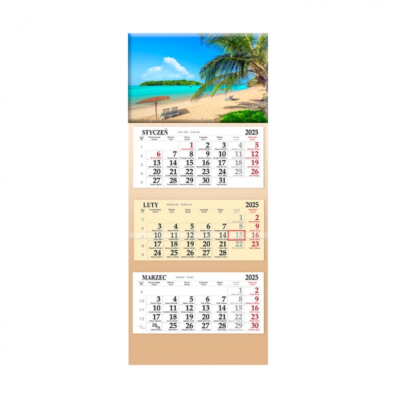 Kalendarz 2025 trójdzielny Rajska plaża SB6 -1