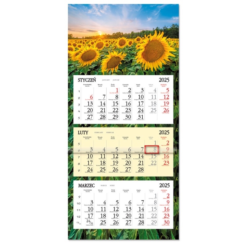 Kalendarz 2025 trójdzielny Słoneczniki SB8-13
