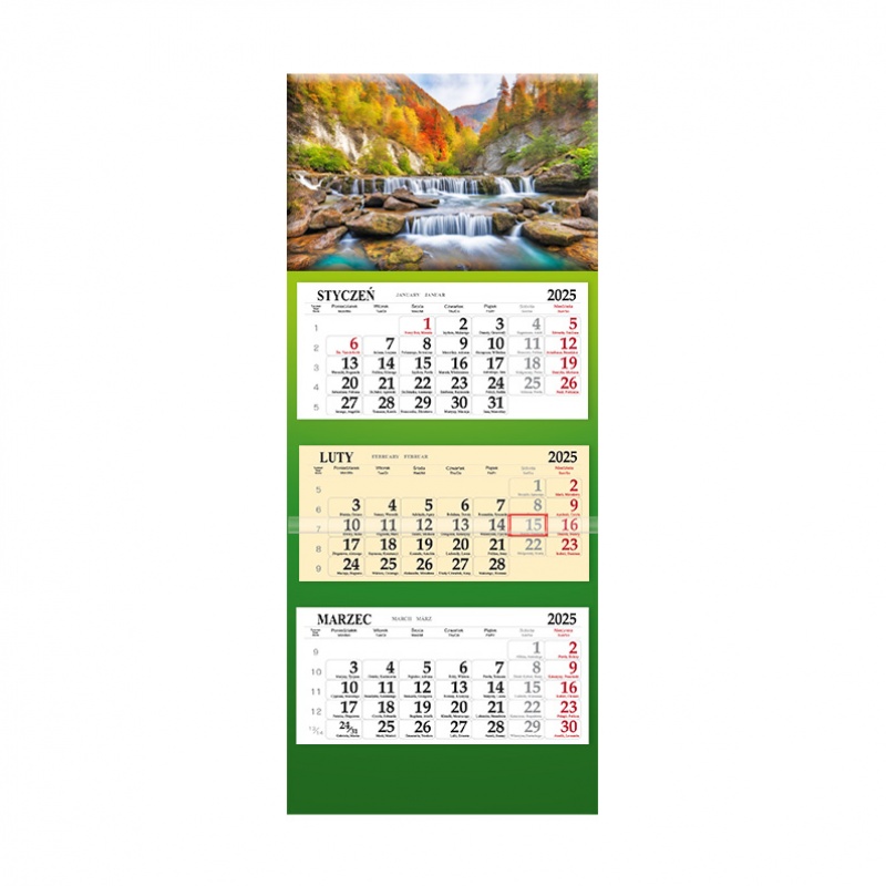 Kalendarz 2025 trójdzielny Wodospady SB6-5
