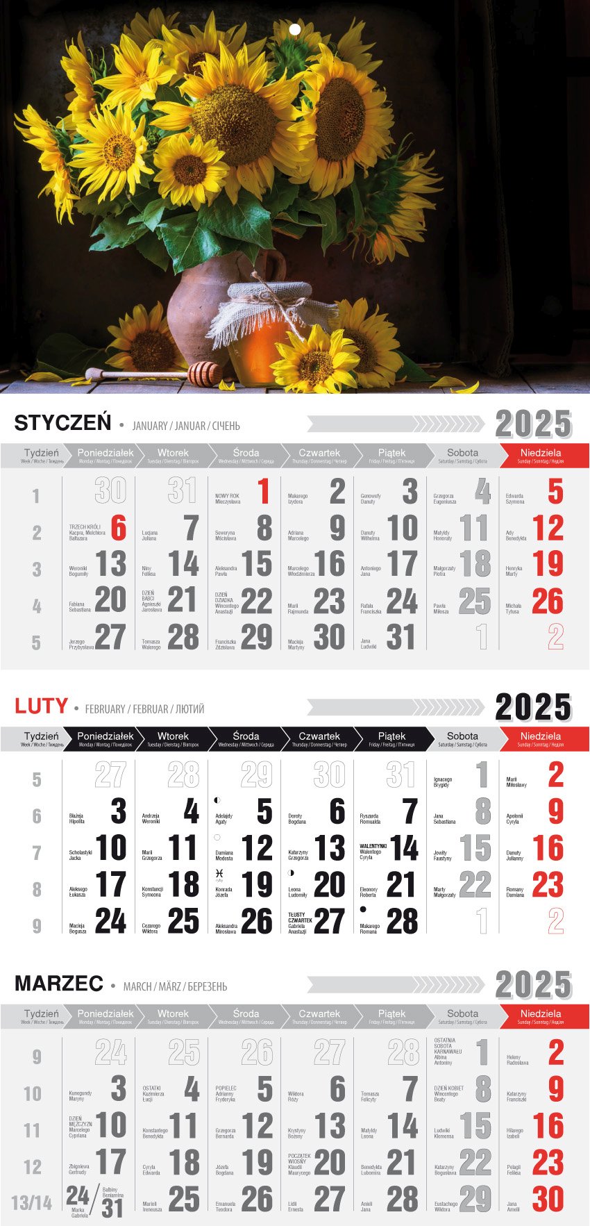 Kalendarz 2025 Trójdzielny z magnesem Słoneczniki