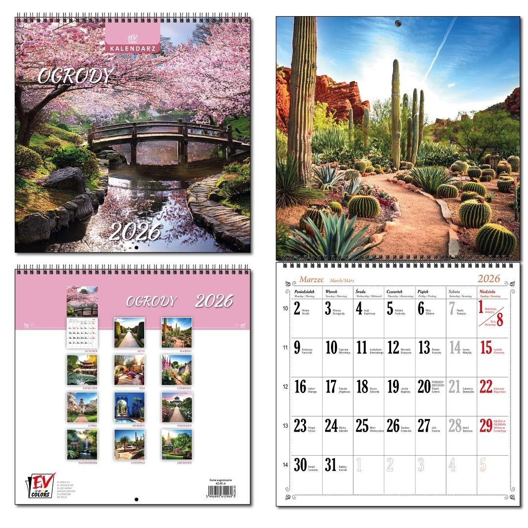 Kalendarz 2026 30x60 13 planszowy Ogrody