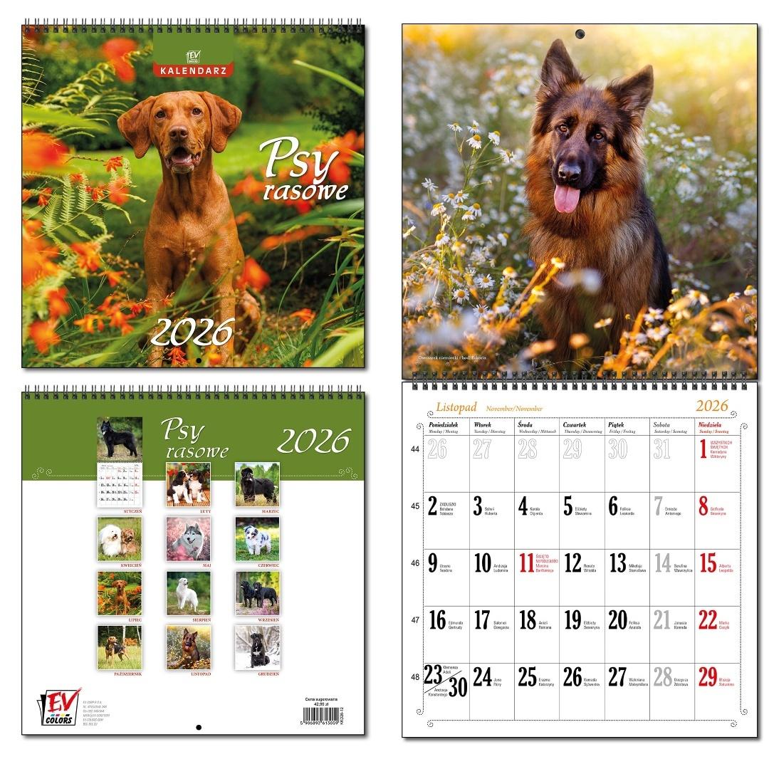 Kalendarz 2026 30x60 13 planszowy Psy Rasowe