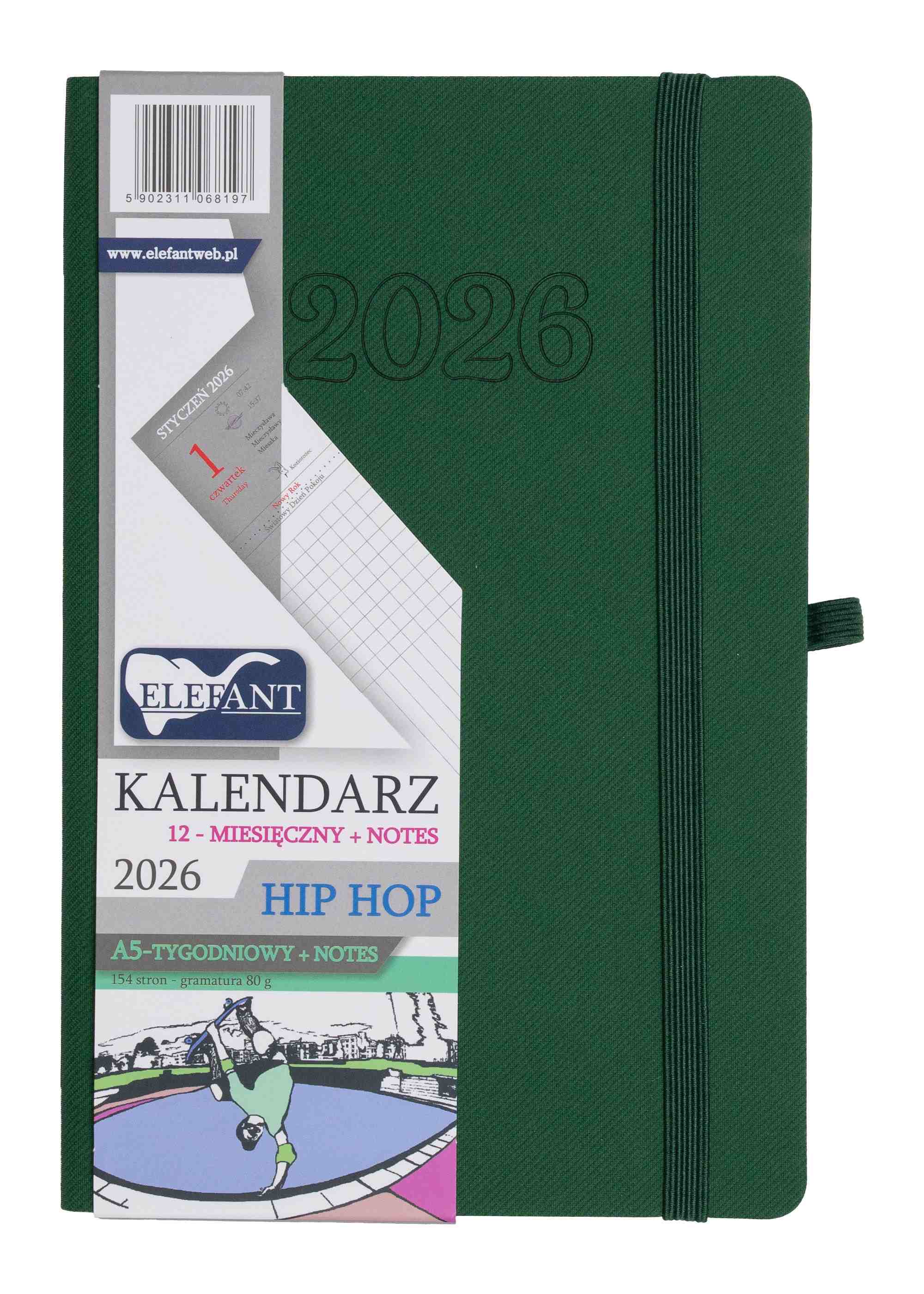 Opakowanie Kalendarz 2026 A5 12M + notes Hip hop zielony