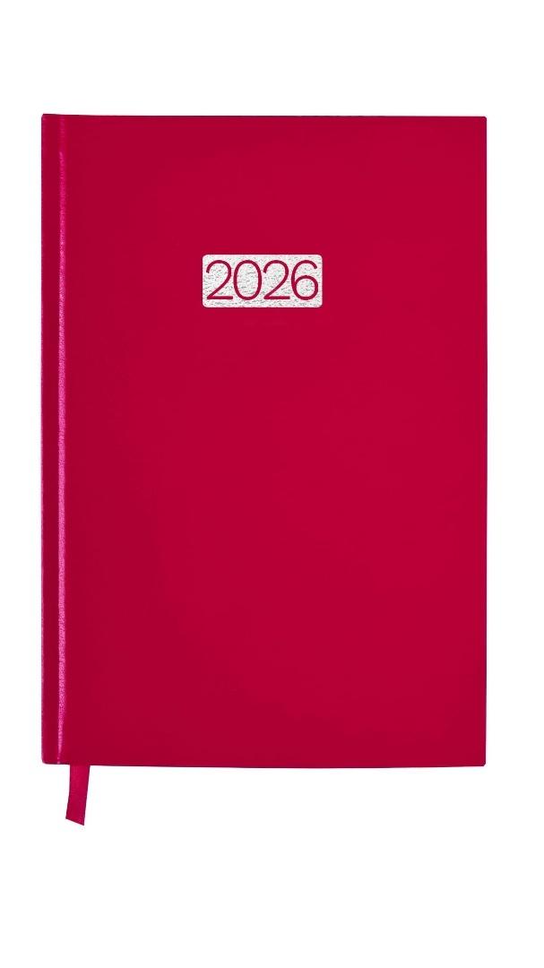 Kalendarz książkowy A5 dzienny w wersji ekonomicznej. Soboty i niedziele na oddzielnych stronach 384 strony format 140x205 mm tłoczenie roku srebrną folią zakładka w kolorze oprawy kwadratowe rogi oprawa twarda
