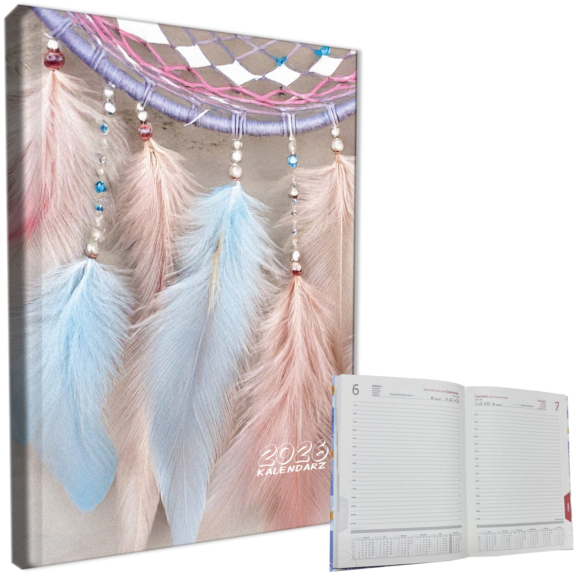 kalendarz formatu A5, układ dzienny, okładka aksamitna soft touch, papier chamois