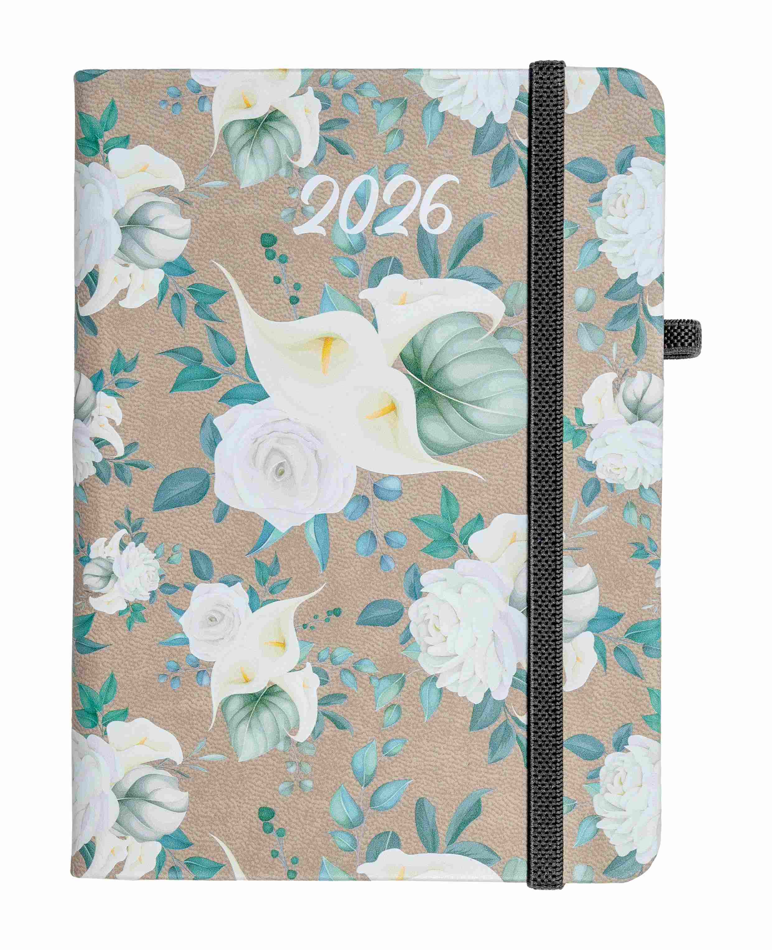 Kalendarz 2026 A6 tyg. Flamenco białe kwiaty