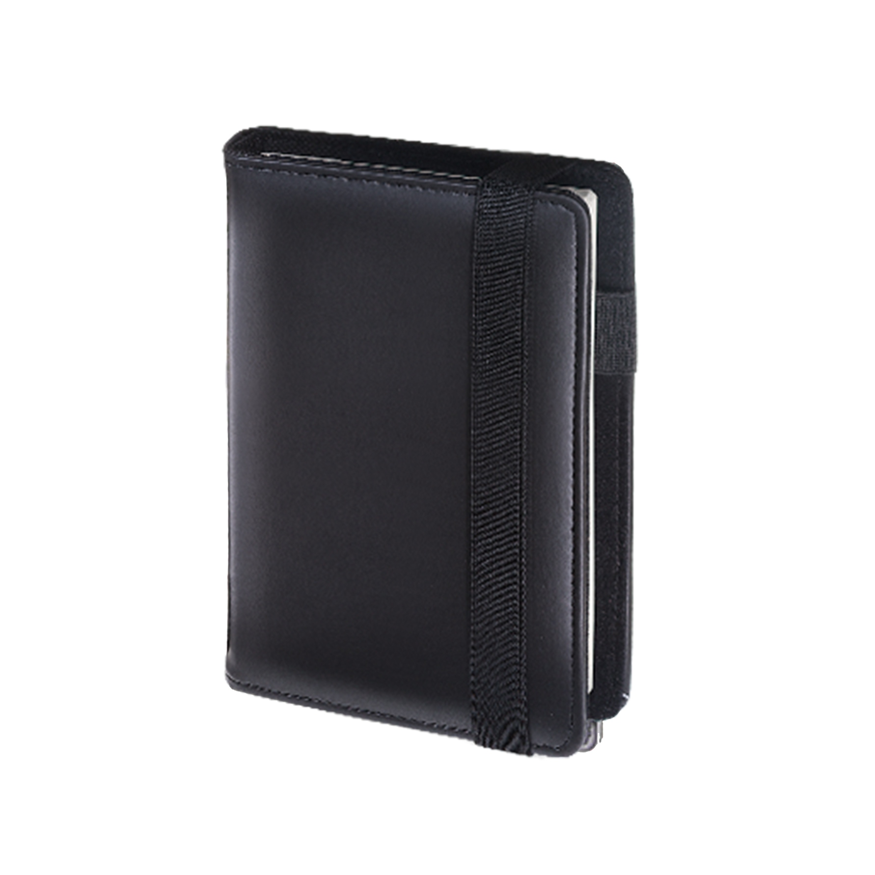 Możliwość różnych sposobów personalizacji kalendarza: np. poprzez tłoczenie na sucho lub z kolorową folią, grawerowanie laserowe oraz nadruk punktowy UV. W tej serii kalendarze posiadają zapięcie na gumkę.