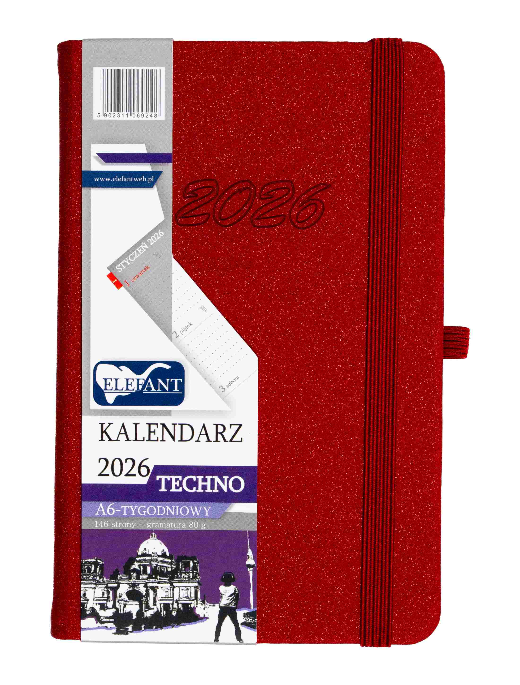 Opakowanie Kalendarz 2026 A6 tygodniowy Techno czerwony