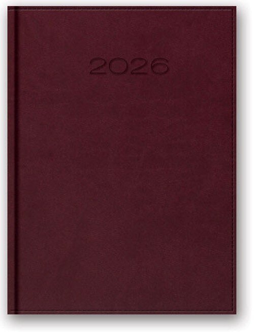 Kalendarz w układzie tygodniowym (na rozkładówce tydzień w kolumnach). Format B5 (blok: 16,7 x 24 cm), papier kremowy, druk szaro-bordowy, registry drukowane. Wstążka-zakładka; 128 stron; perforacja narożna; notes teleadresowy. Okleina skóropodobna. Typ okładki: standard.