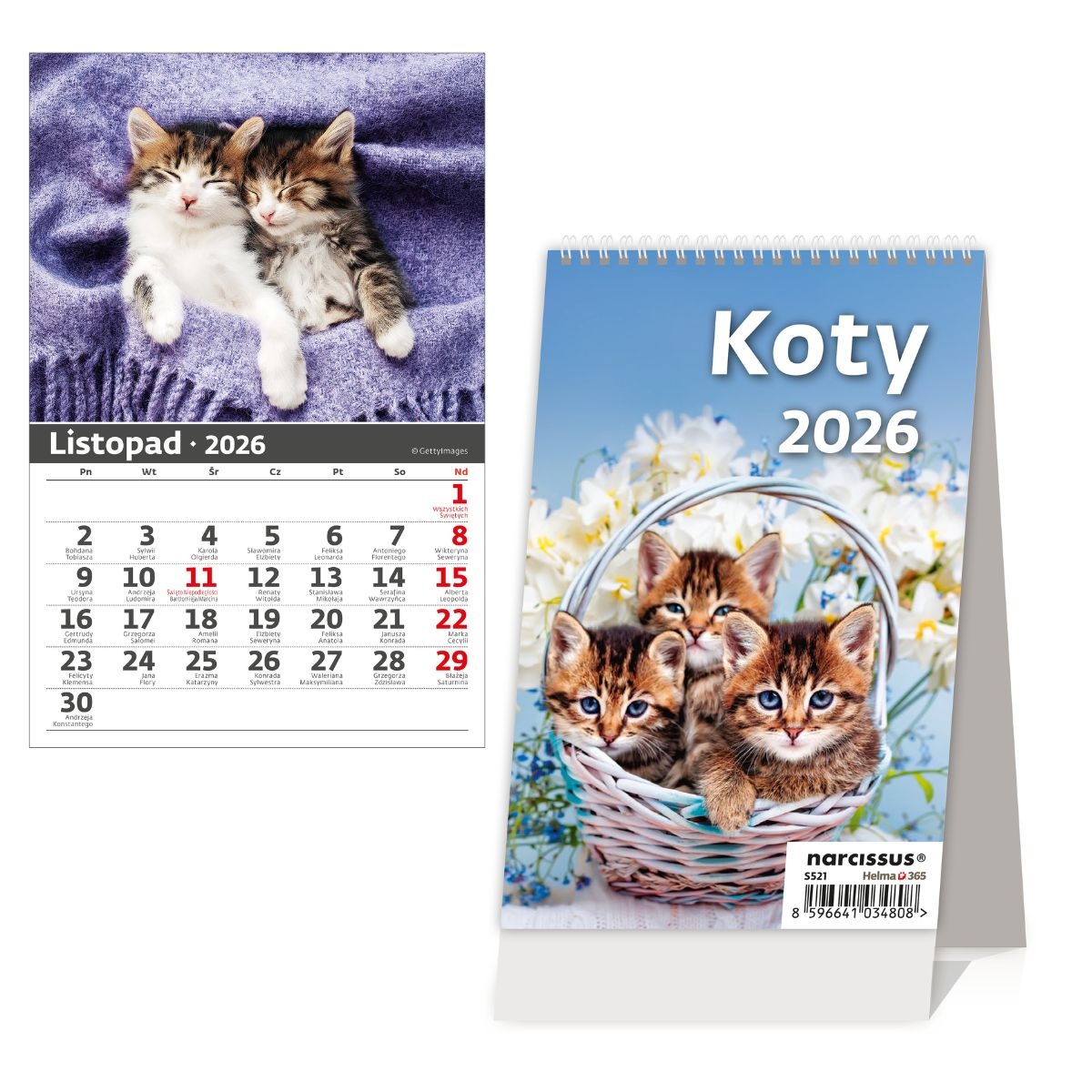 Kalendarz 2026 Biurkowy Pionowy Koty miesięczny Klasyczny kalendarz biurkowy na spirali, z miesięcznym kalendarium, wersja pionowa, z innym obrazkiem na każdy miesiąc. Kalendarz posiada specjalną podpórkę, która zapewnia stabilność. Wymiary 10,5 x 16 cm