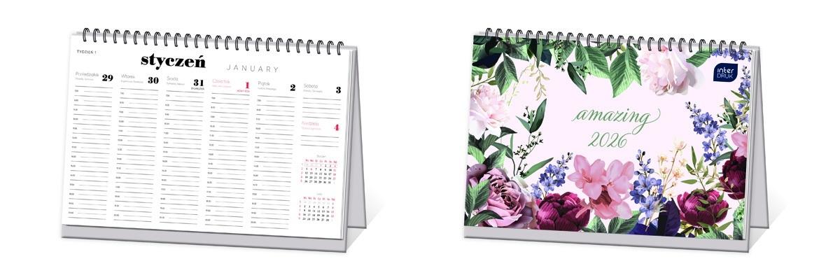 Kalendarz 2026 biurkowy tygodniowy Kwiaty