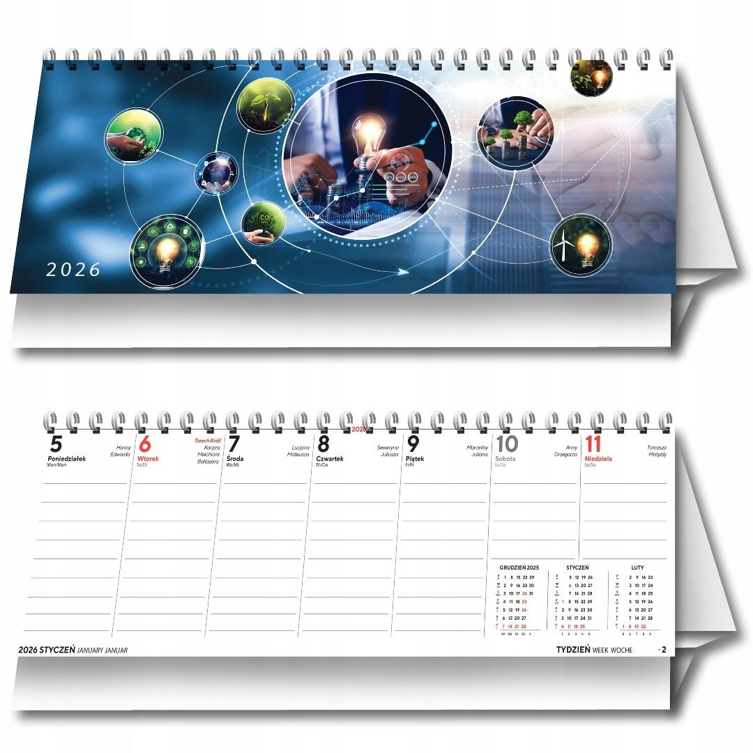 Kalendarz 2026 biurkowy tygodniowy poziomy