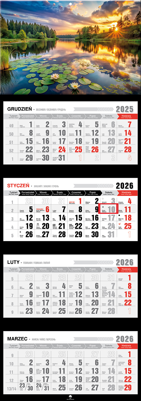Opakowanie Kalendarz 2026 czterodzielny premium mazury
