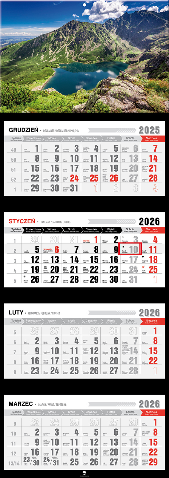 Opakowanie Kalendarz 2026 czterodzielny premium Tatry