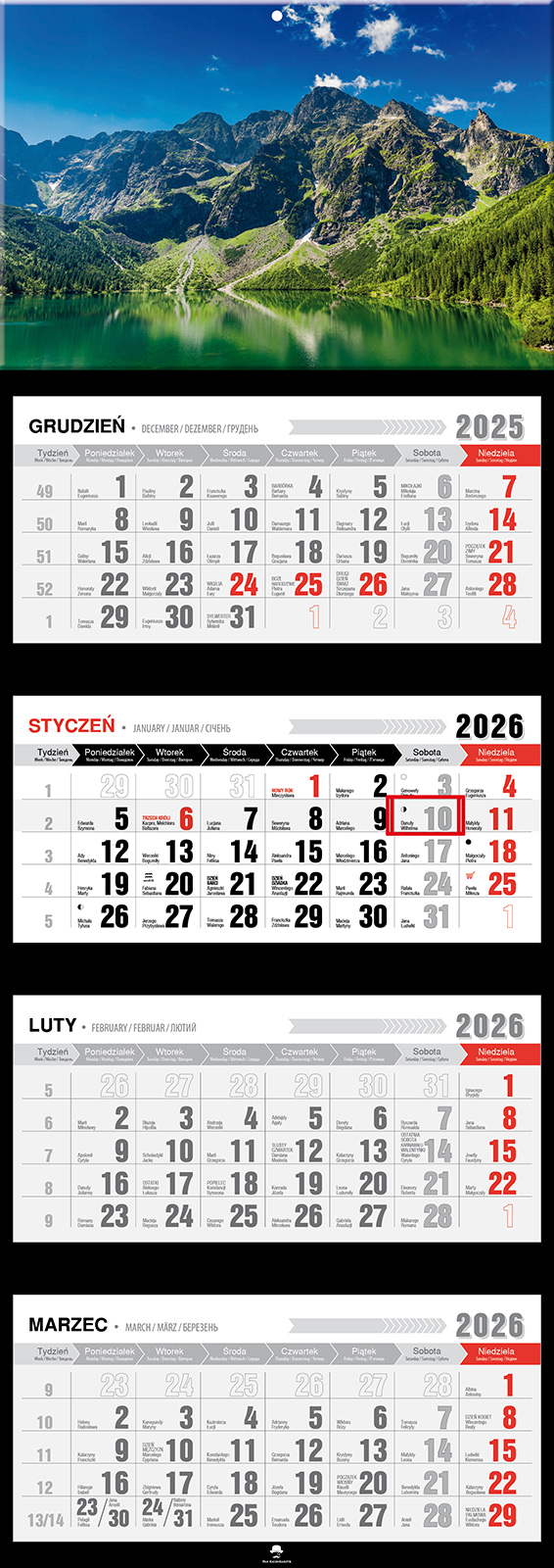 Opakowanie Kalendarz 2026 czterodzielny premium Tatry