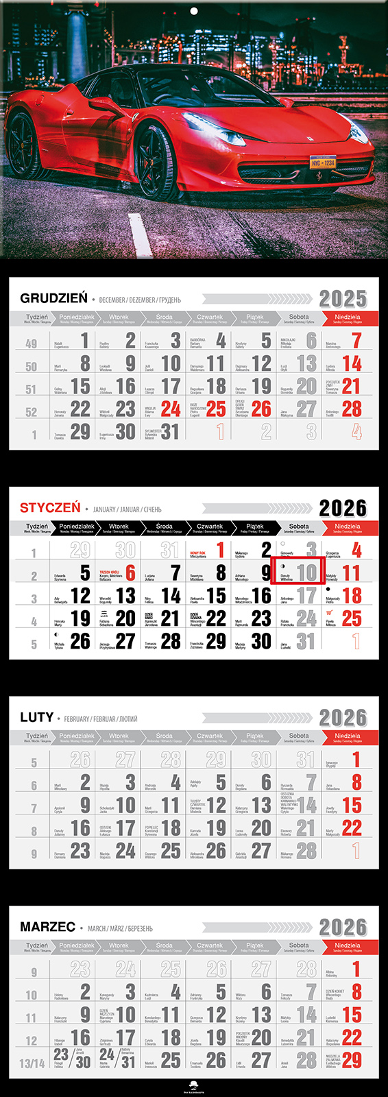 Opakowanie Kalendarz 2026 czterodzieny premium lux car