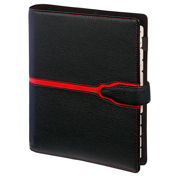 Zatrzask wewnętrzny - ringi o powiekszonej średnicy 1,4 cm. Wkład: Rozmiar - 14,5x21 cm, Rodzaj wkładu - wymienny, pasujący do rozmiaru okładki, Papier - Chamois wysokiej jakości 70 g/m2, Skład bloku - Kalendarz, Notes, Finanse, Adresy Ilość stron Kalendarza - 162 stron,
