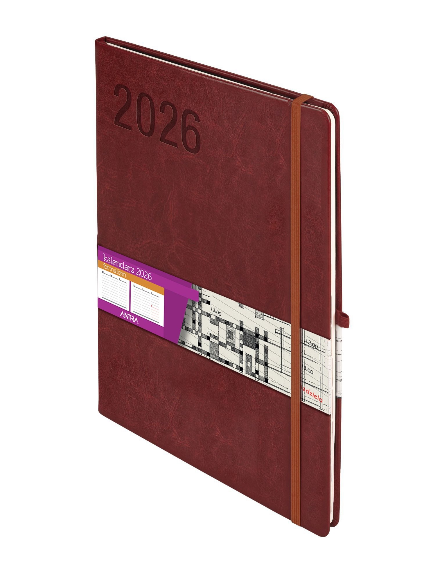 • Kolekcja: Formalizm • Format: A4 • Wymiary okładki: 295x210 mm • Układ: tydzień do wglądu • Ilość stron: 144 • Oprawa: twarda • Materiał: skóra ekologiczna • Gramatura papieru: 80g • Kolor papieru: off white • Dodatki: plan roku 2026, ważne wydarzenia, skorowidz adresowy • Pionowa gumka zamykająca: w kolorze okładki • Wstążka: w kolorze okładki • Gumka na długopis: w kolorze okładki • Zaokrąglone rogi: tak • Wyklejka: czarna • Koperta: tak • Dostępne kolory: czarny, czerwony, granatowy, brązowy