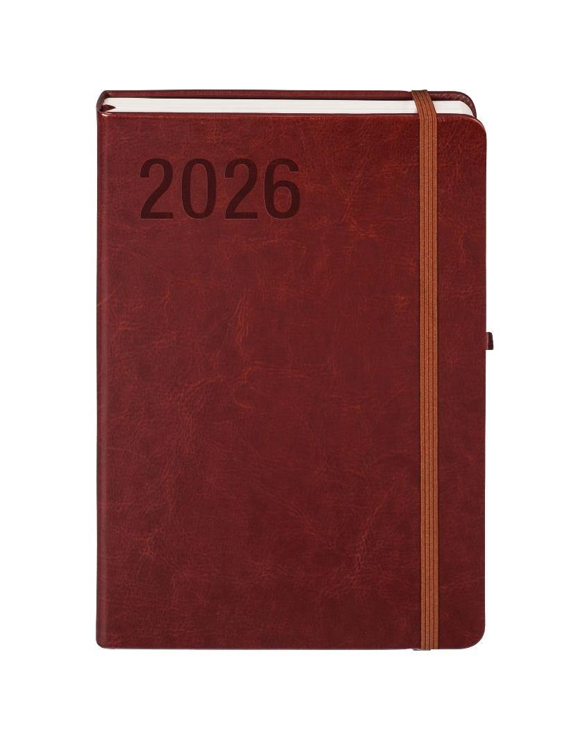 • Kolekcja: Formalizm • Format: A5 • Wymiary okładki: 210x145 mm • Układ: dzień na stronie • Ilość stron: 352 • Oprawa: twarda • Materiał: skóra ekologiczna • Gramatura papieru: 80g • Kolor papieru: off white • Dodatki: plan roku 2026, ważne wydarzenia, plan miesiąca, skorowidz adresowy, notatki • Pionowa gumka zamykająca: w kolorze okładki • Wstążka: w kolorze okładki • Gumka na długopis: w kolorze okładki • Zaokrąglone rogi: tak • Wyklejka: czarna • Koperta: tak • Dostępne kolory: czarny, czerwony, brązowy