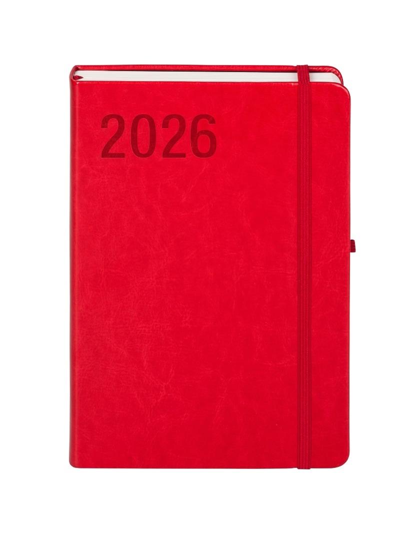 • Kolekcja: Formalizm • Format: A5 • Wymiary okładki: 210x145 mm • Układ: dzień na stronie • Ilość stron: 352 • Oprawa: twarda • Materiał: skóra ekologiczna • Gramatura papieru: 80g • Kolor papieru: off white • Dodatki: plan roku 2026, ważne wydarzenia, plan miesiąca, skorowidz adresowy, notatki • Pionowa gumka zamykająca: w kolorze okładki • Wstążka: w kolorze okładki • Gumka na długopis: w kolorze okładki • Zaokrąglone rogi: tak • Wyklejka: czarna • Koperta: tak • Dostępne kolory: czarny, czerwony, brązowy