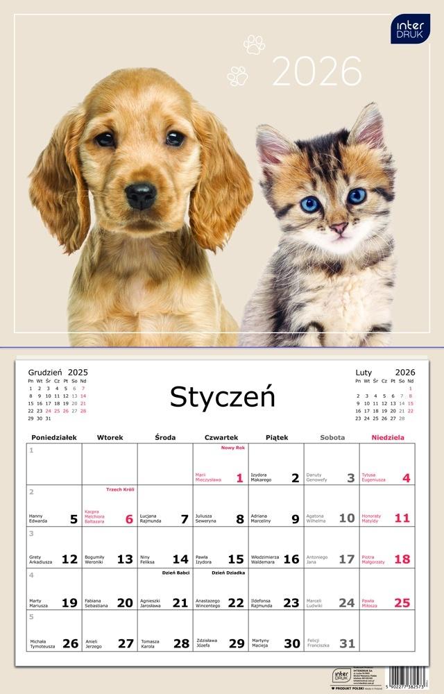 Opakowanie Kalendarz 2026 jednodzielny 32x50cm Zwierzaki