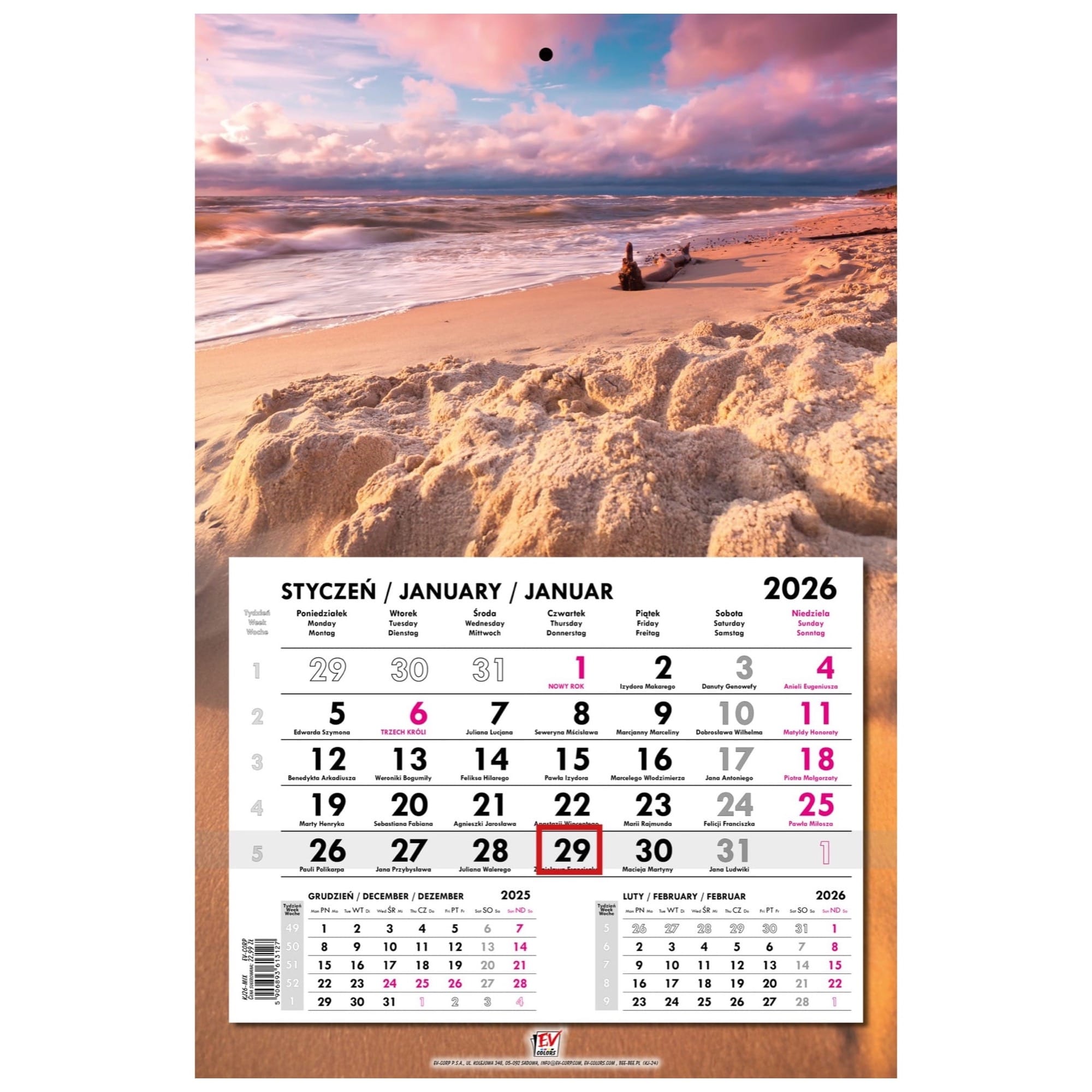 Kalendarz 2026 jednodzielny główka płaska Bałtyk