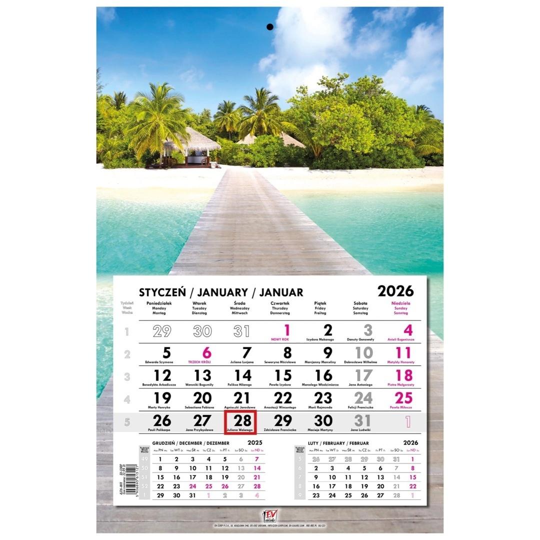Kalendarz 2026 jednodzielny główka płaska Malediwy