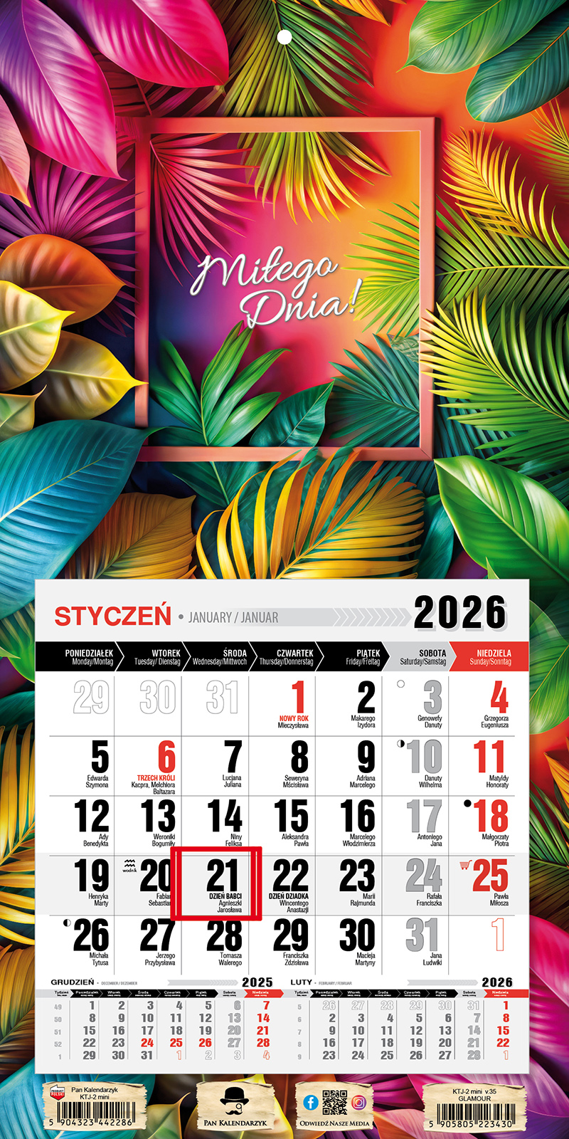 Opakowanie Kalendarz 2026 jednodzielny mini glamour