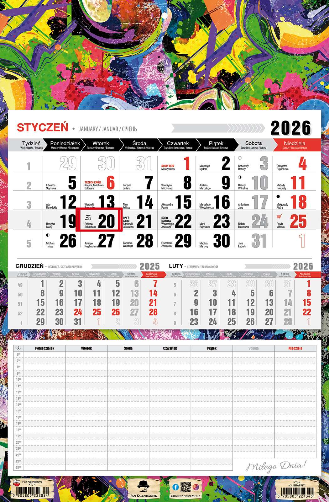 Kalendarz 2026 jednodzielny z planem zajęć