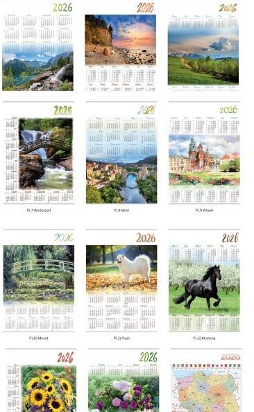 Kalendarz 2026 Jednoplanszowy MIX 1 (15szt)