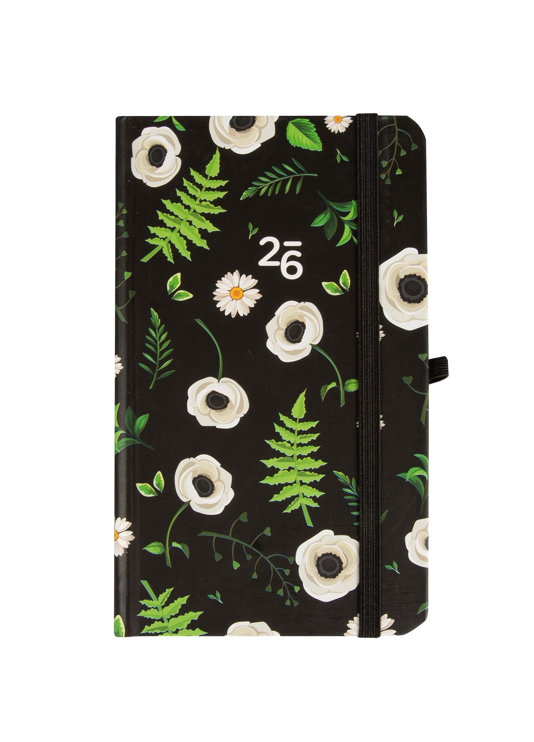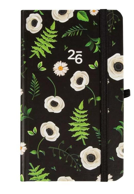 Opakowanie Kalendarz 2026 kieszonkowy tygodniowy Kwiaty na czarnym tle
