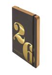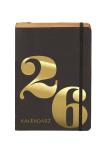 • Kolekcja: Kraft • Format: A5 • Wymiary okładki: 207x141 mm • Układ: dzień na stronie • Ilość stron: 352 • Oprawa: miękka • Materiał: papier • Gramatura papieru: 80g • Kolor papieru: chamoise • Dodatki: plan roku 2026, ważne wydarzenia, skorowidz adresowy, notatki • Pionowa gumka zamykająca: czarna • Wstążka: czarna • Gumka na długopis: nie • Zaokrąglone rogi: tak • Wyklejka: czarna • Koperta: nie • Dostępne kolory: czarny, złoty, kwiaty