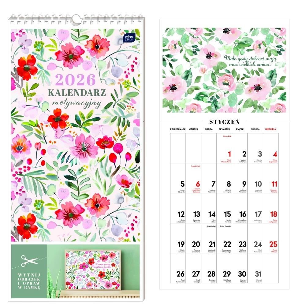 Kalendarz 2026 motywacyjny 22x46cm Kwiaty