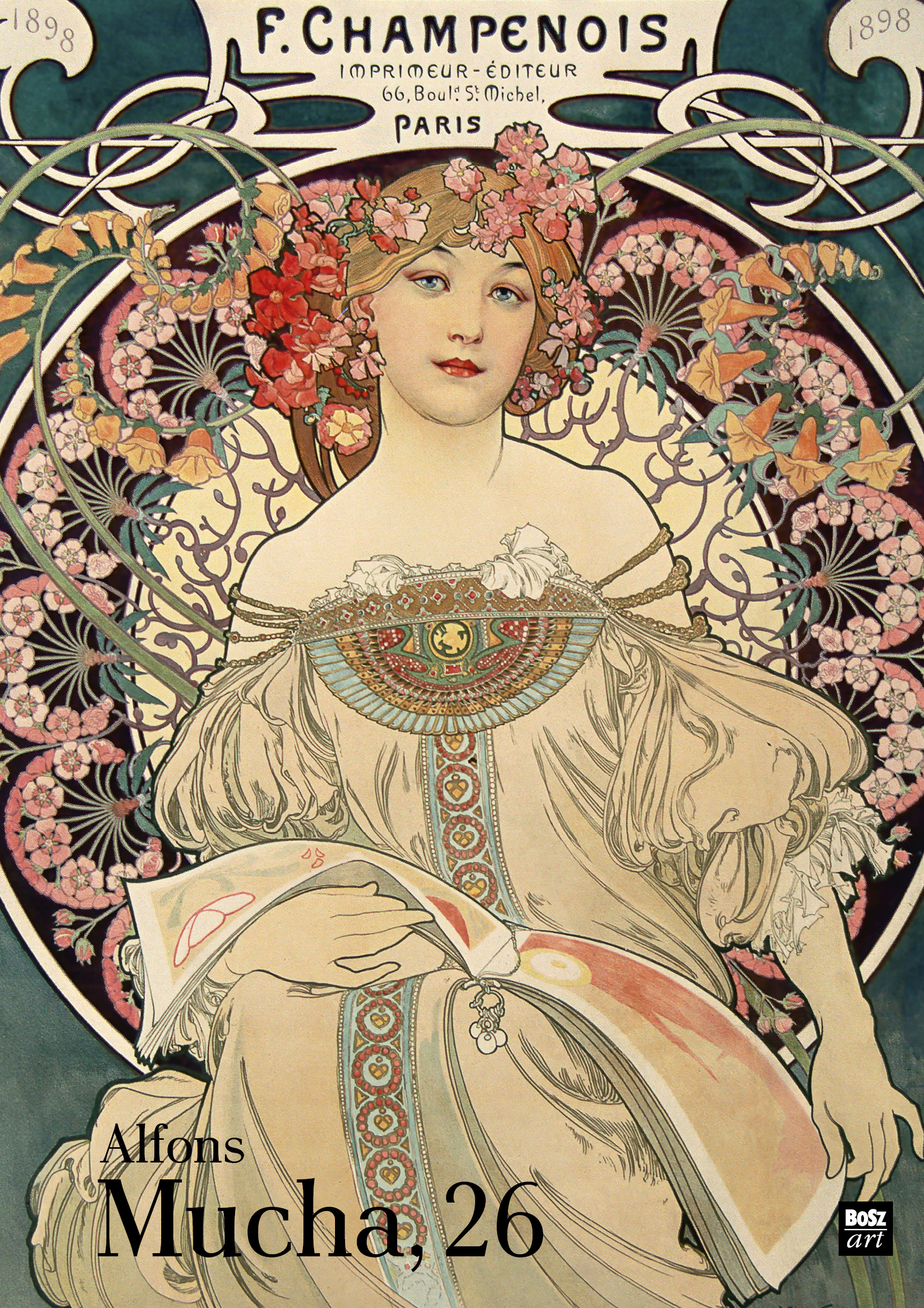 Kalendarz 13-kartkowy na 2026 rok z 12 ilustracjami prac Alfonsa Muchy w formacie A3 (420×297 mm) wydrukowany na kredowym papierze o gramaturze 170g. Indeks dzieł Alfonsa Muchy znajdujących się w kalendarzu: Rozmarzenie, plakat dla wydawnictwa F. Champenois, 1897 Sztuki piękne: Taniec, 1898 Zodiak, 1896 Cztery pory roku: Wiosna, 1896 Monako – Monte-Carlo, 1897 Salome, 1897 Kamienie szlachetne: Szmaragd, 1900 Cztery pory roku: Lato, 1896 Pióro, 1899 Cztery pory roku: Jesień, 1896 Pierwiosnek, 1899 Kamienie szlachetne: Rubin, 1900 Cztery pory roku: Zima, 1896 Alfons Maria Mucha (1860–1939) był czeskim grafikiem i malarzem, jednym z czołowych przedstawicieli secesji i fin de siècle’u. Jego twórczość łączyła tradycje bizantyńskie z nowoczesnym stylem epoki. Mucha zasłynął przede wszystkim z grafik przedstawiających kobiety w stylu belle époque – wyidealizowane, otoczone kwiatami, liśćmi, symbolami i dekoracyjnymi arabeskami, co stało się jego rozpoznawalnym znakiem artystycznym.