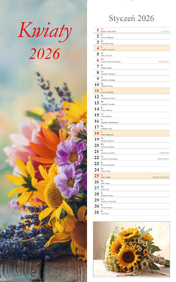 Opakowanie Kalendarz 2026 paskowy Kwiaty