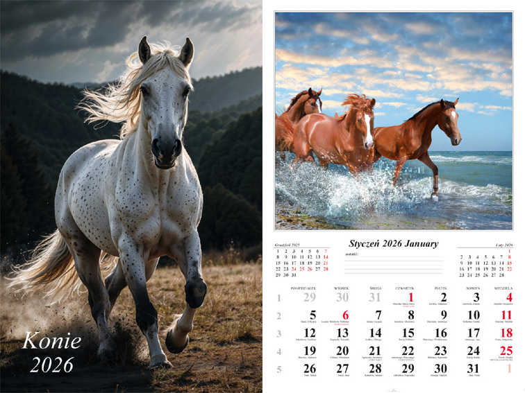 Opakowanie Kalendarz 2026 ścienny 13-k Konie