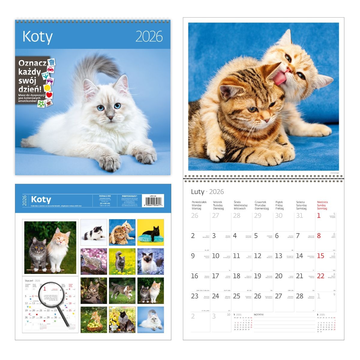 Opakowanie Kalendarz 2026 ścienny 30x30 Koty HELMA